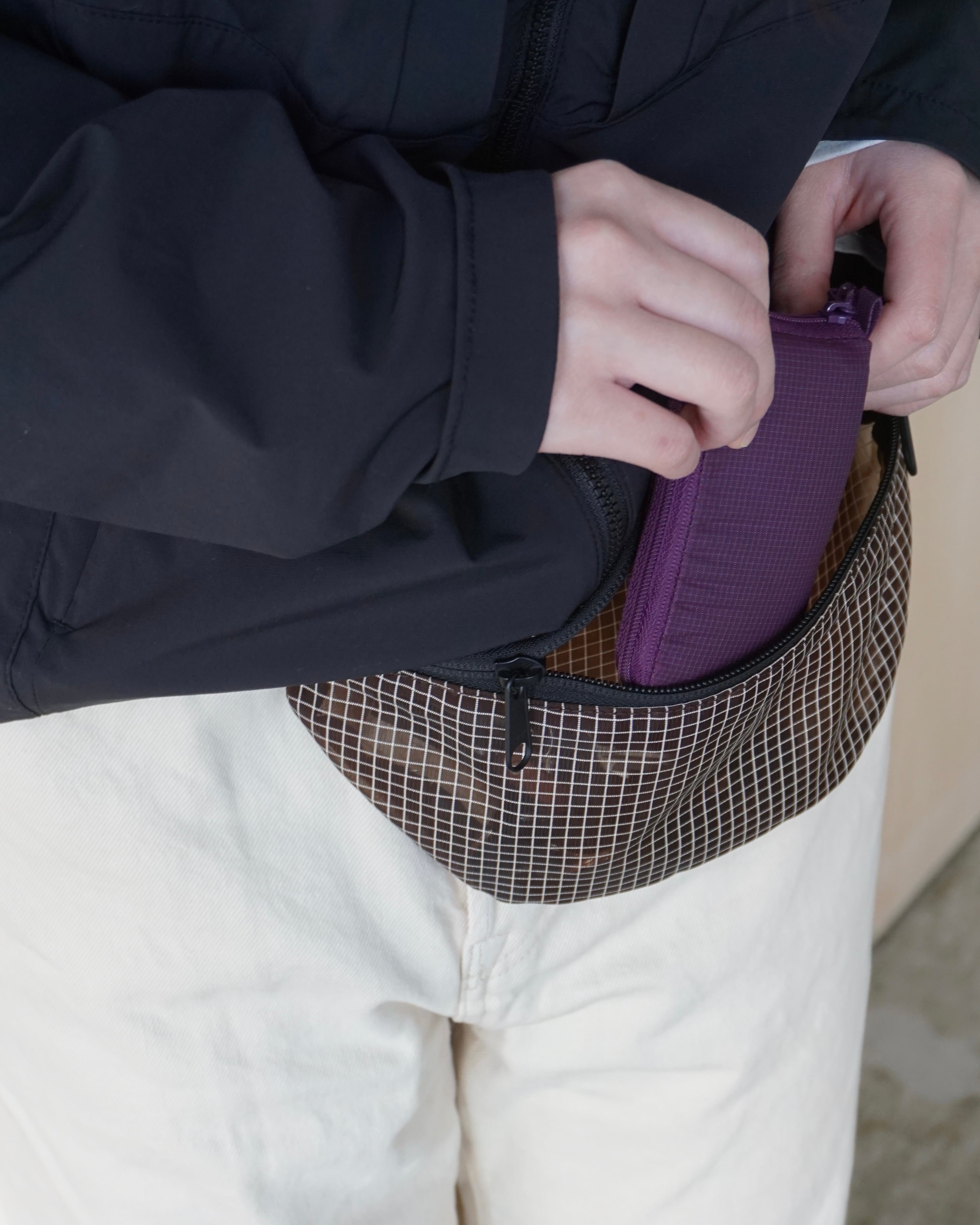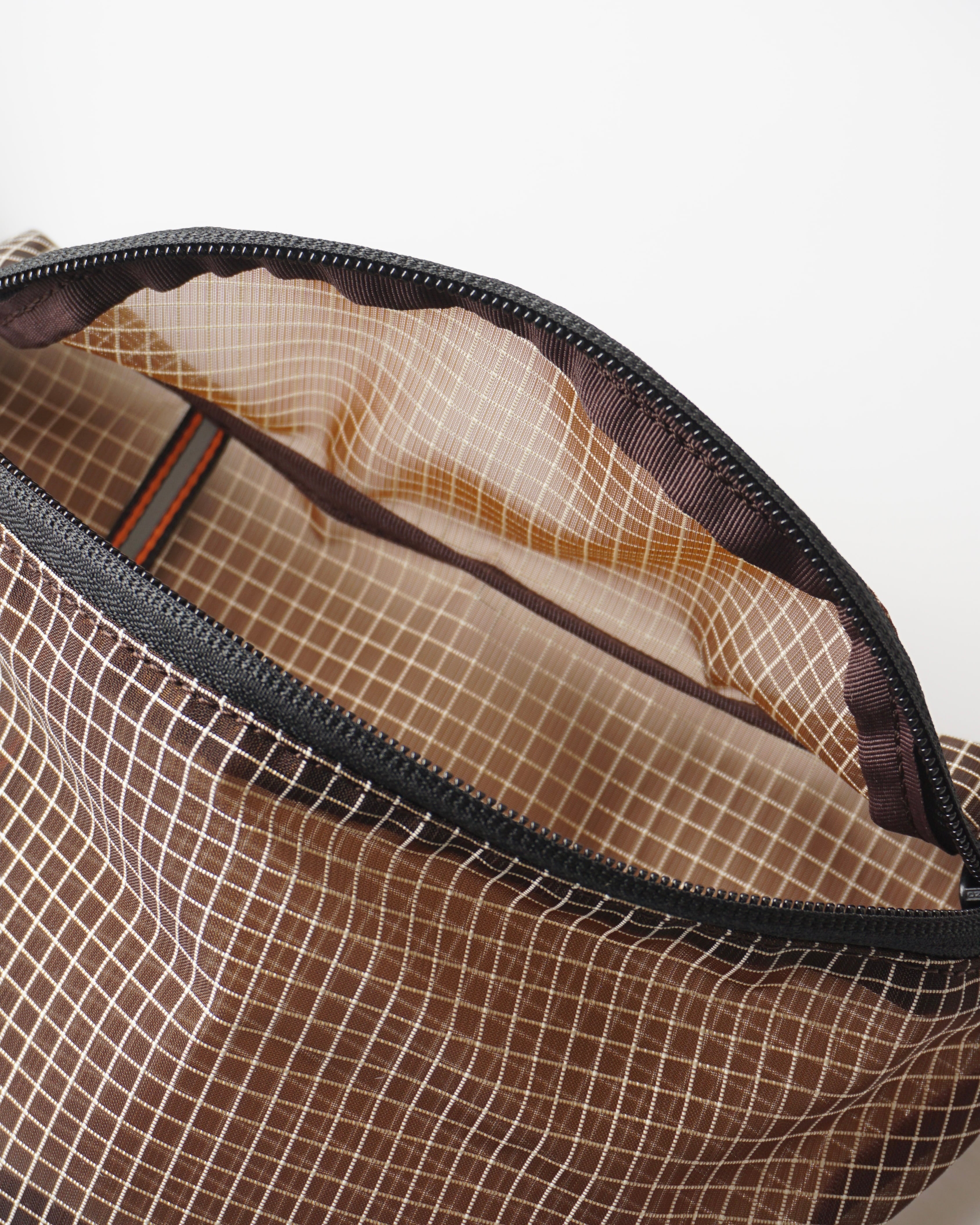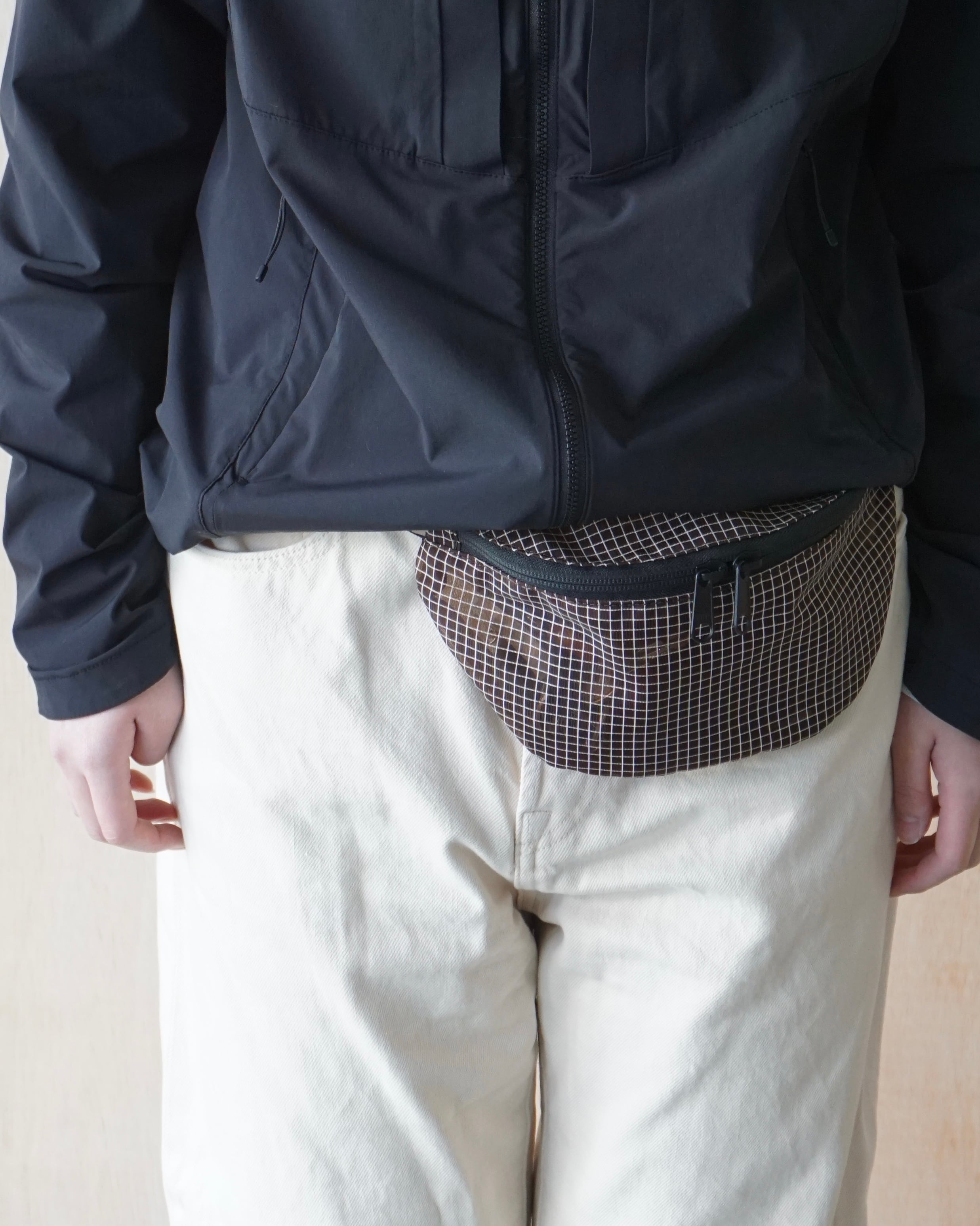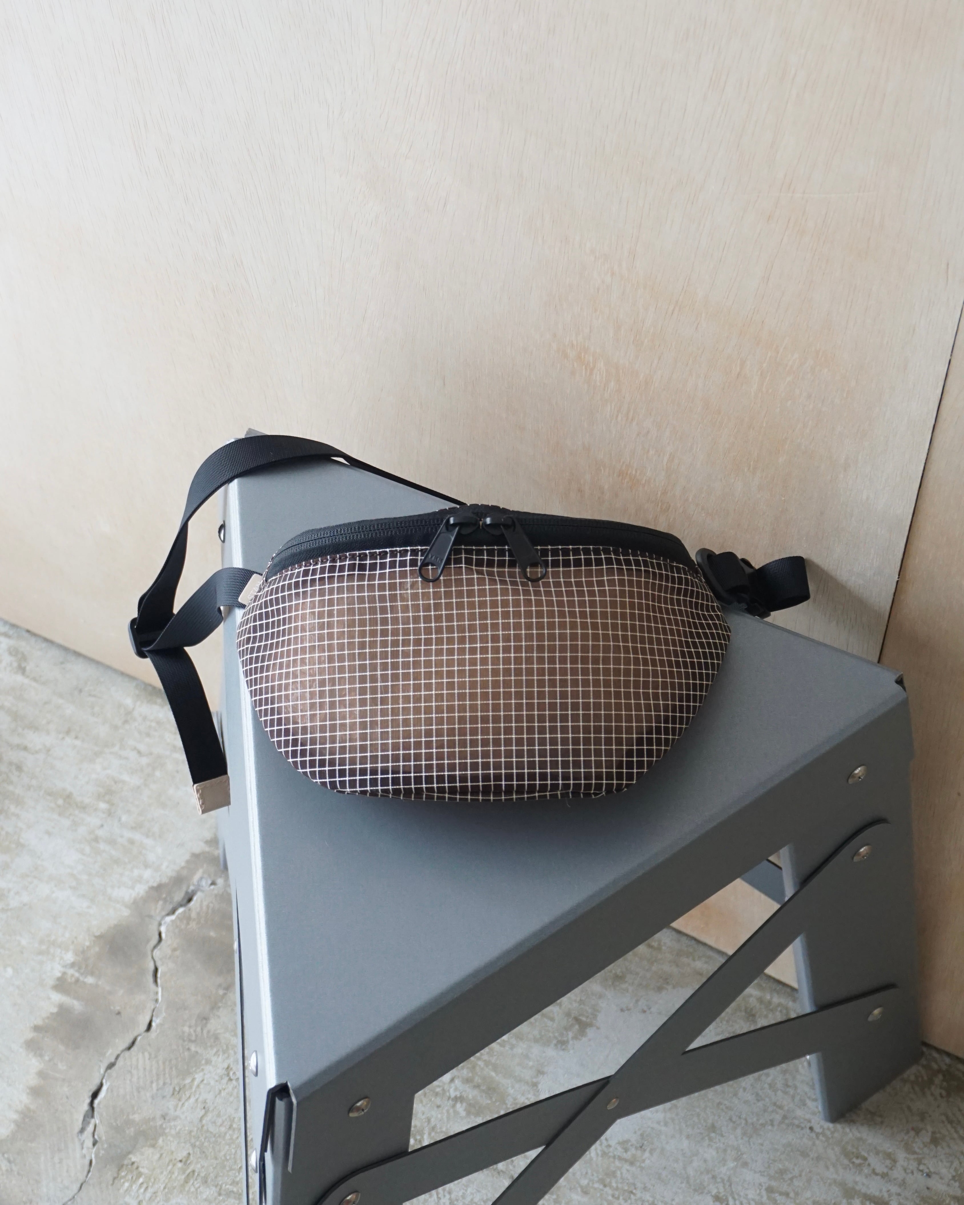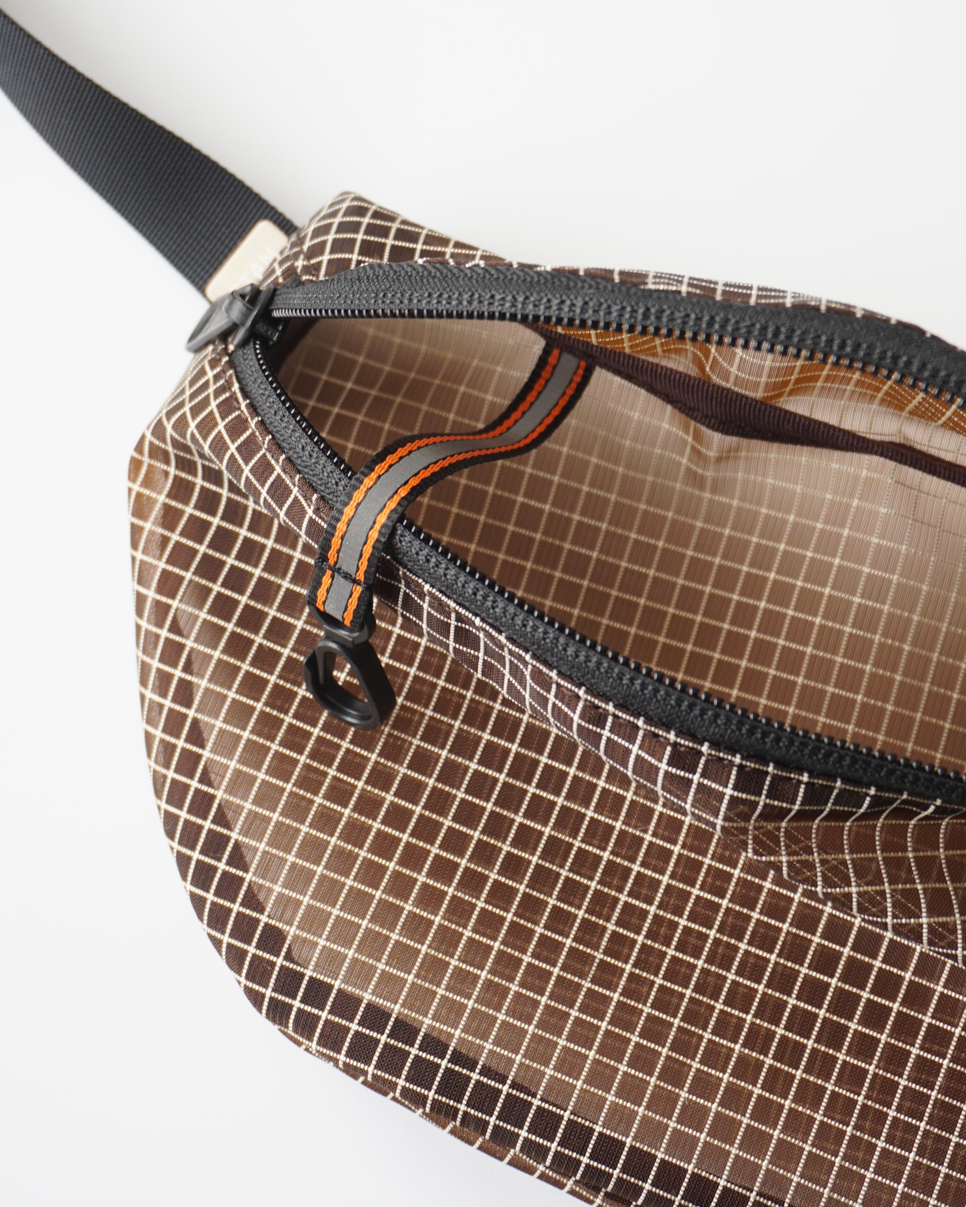 格子状に織り込んだメッシュ生地を使用したウエストバッグ